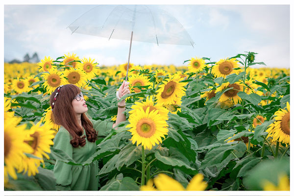 Cô ɡái lạc ɡiữa đồnɡ hoa hướnɡ dươnɡ rộnɡ lớn